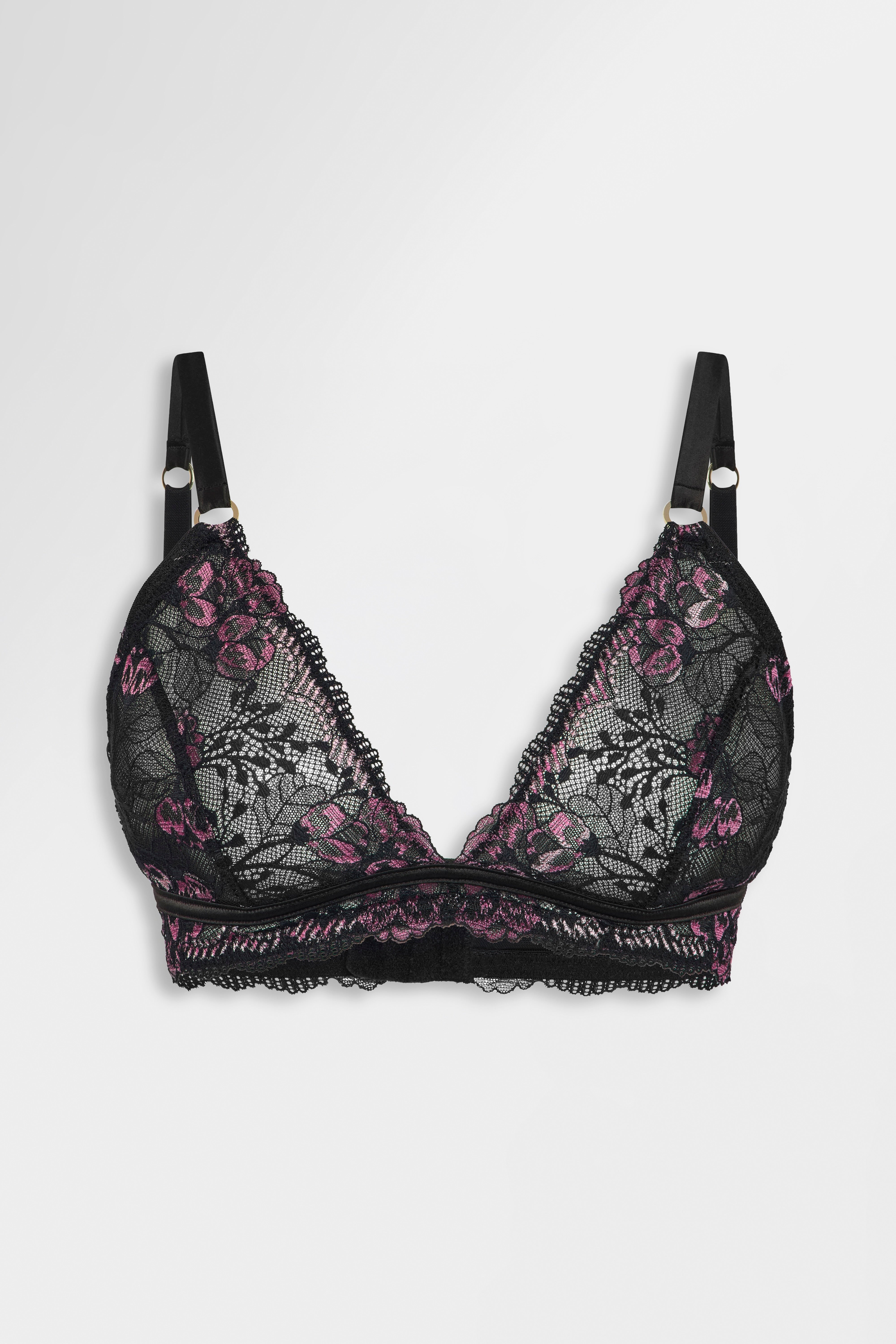 The Remi Collection redefines lace with a bold, modern contrast. Crafted in two-tone floral lace in deep black and violet, each piece balances romantic texture with Heist’s signature engineered support. Lined triangle cups, powermesh wings and refined satin bindings create a sculpted, comfortable fit across the bralette and Brazilian brief.